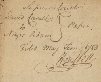 Negro, Adam (a certain Negro Slave named Adam; Enslaved by David Cowell) NAMED IN CASE
