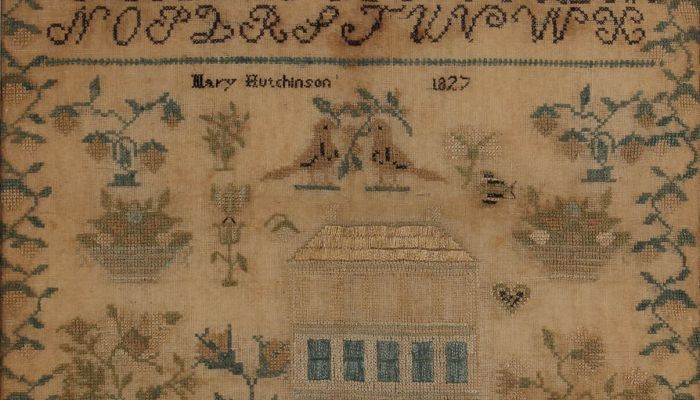 Mary’s date of death is unknown. Her son, Joseph Hutchinson Lukens, married Sarah Elizabeth Hollenback (1847-?) in 1873. Her nephew, Mr. Neafie Adams, donated both samplers to the Old Barracks Association.