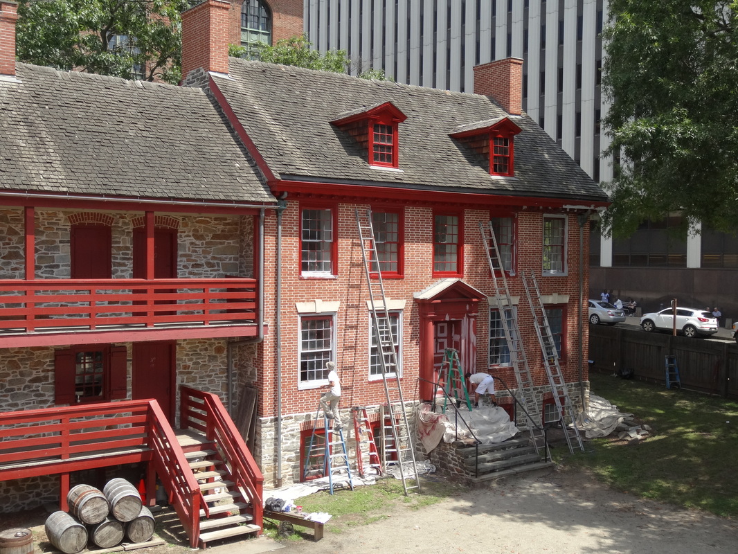 Repairs and restoration on the Officers’ House is funded by the Old Barracks Association with a matching grant from The Society of Colonial Wars in the State of New Jersey. Restoration began August 1, 2016.