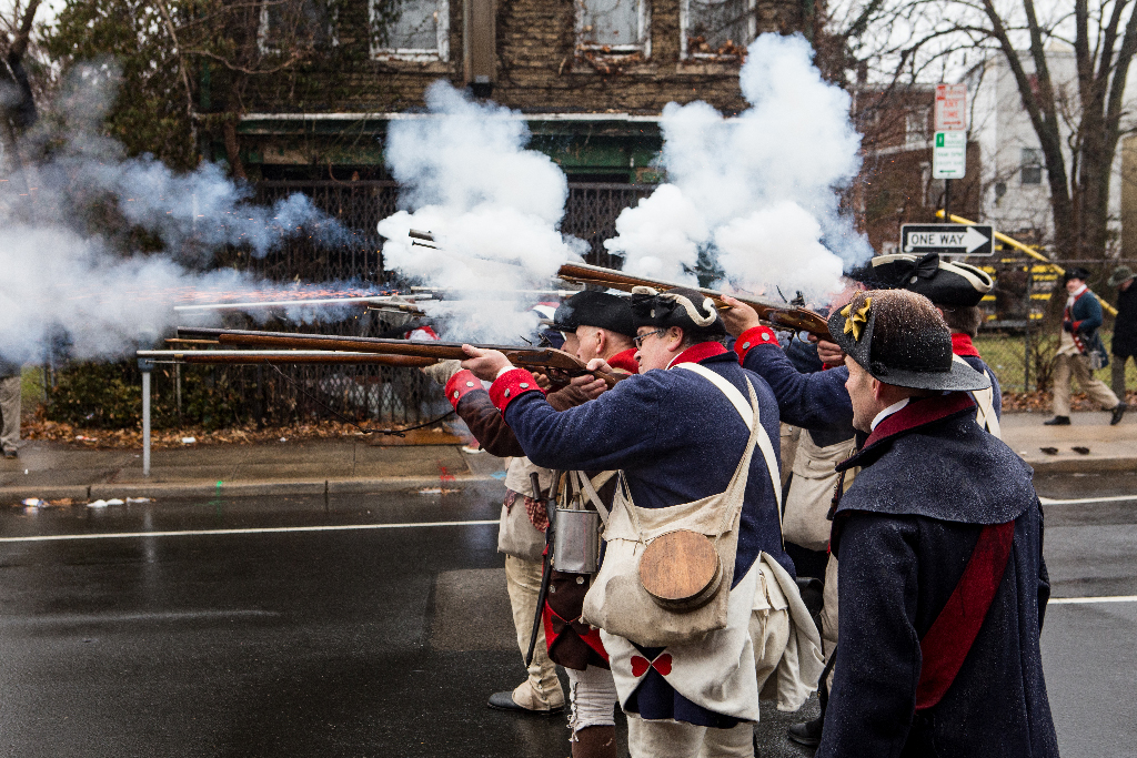 The OBM, along with other Ten Crucial Days sites, has adopted the “Clothing Guidelines for Reenactors” (including restrictions and prohibitions) established by the Washington Crossing (PA) Historic Park. These guidelines cover those portraying the Continental Army, associated militia units, and civilian/followers for our annual Battle of Trenton reenactment.